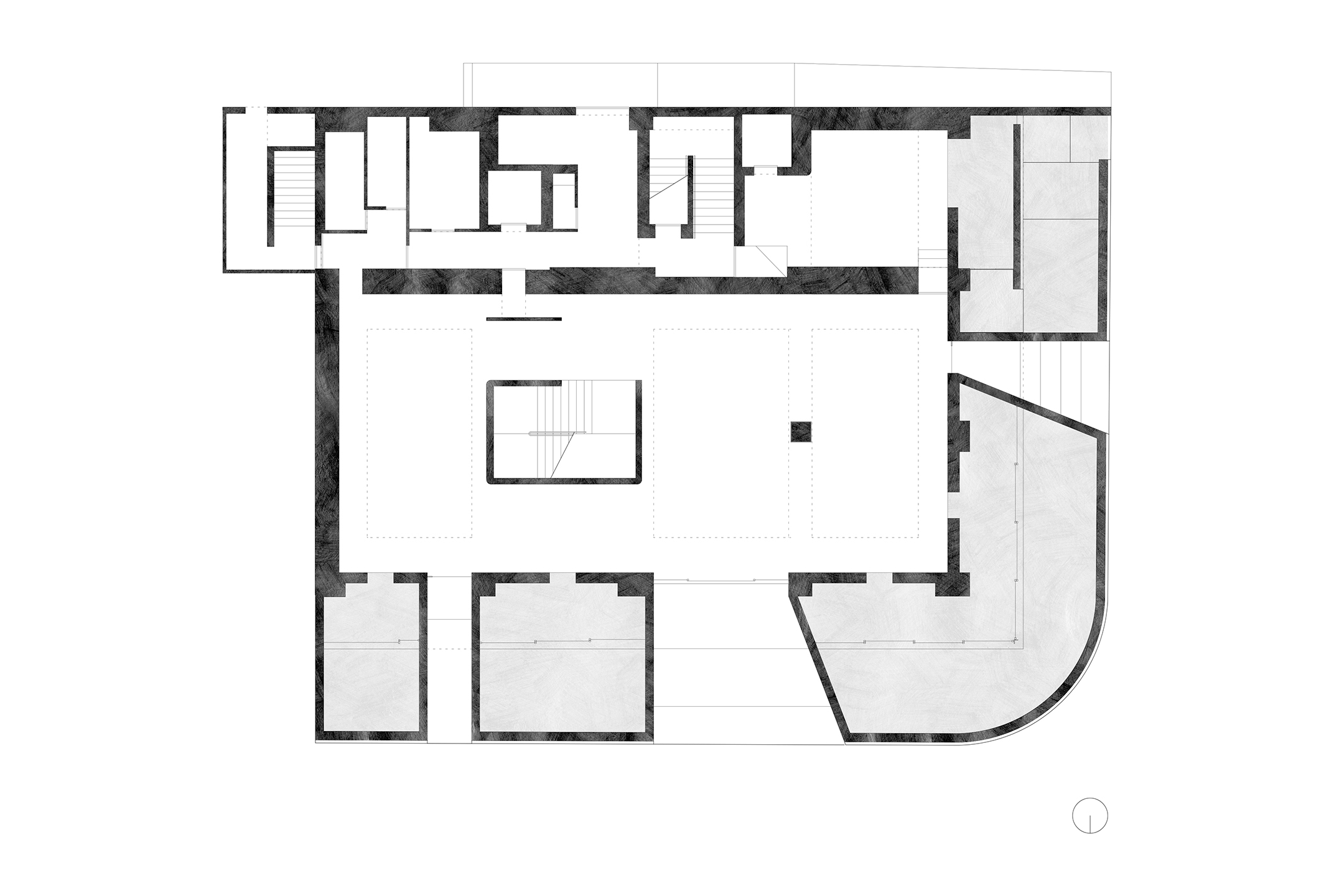 来場する人々が安心して親密に交流することのできる「サロン」としての内部空間をつくり出すため、版築塀や墨漆喰の外壁によって建築を包み込んだ。