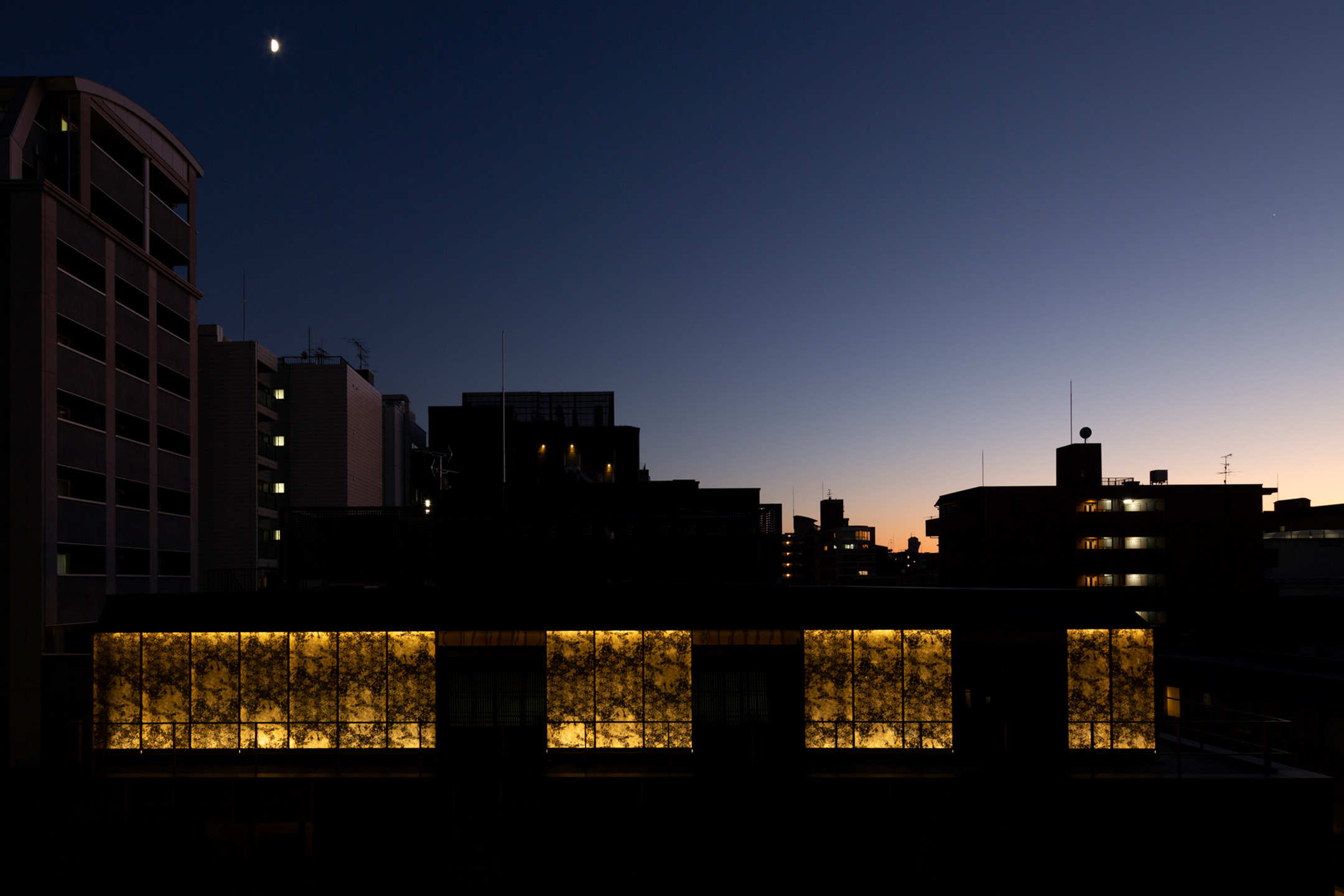伝統的な景観が期待される街区において、墨漆喰や金箔、版築塀といった、京都で伝統的に使われてきたマテリアルそのものの質感によって、歴史の継承を表現することを考えた。